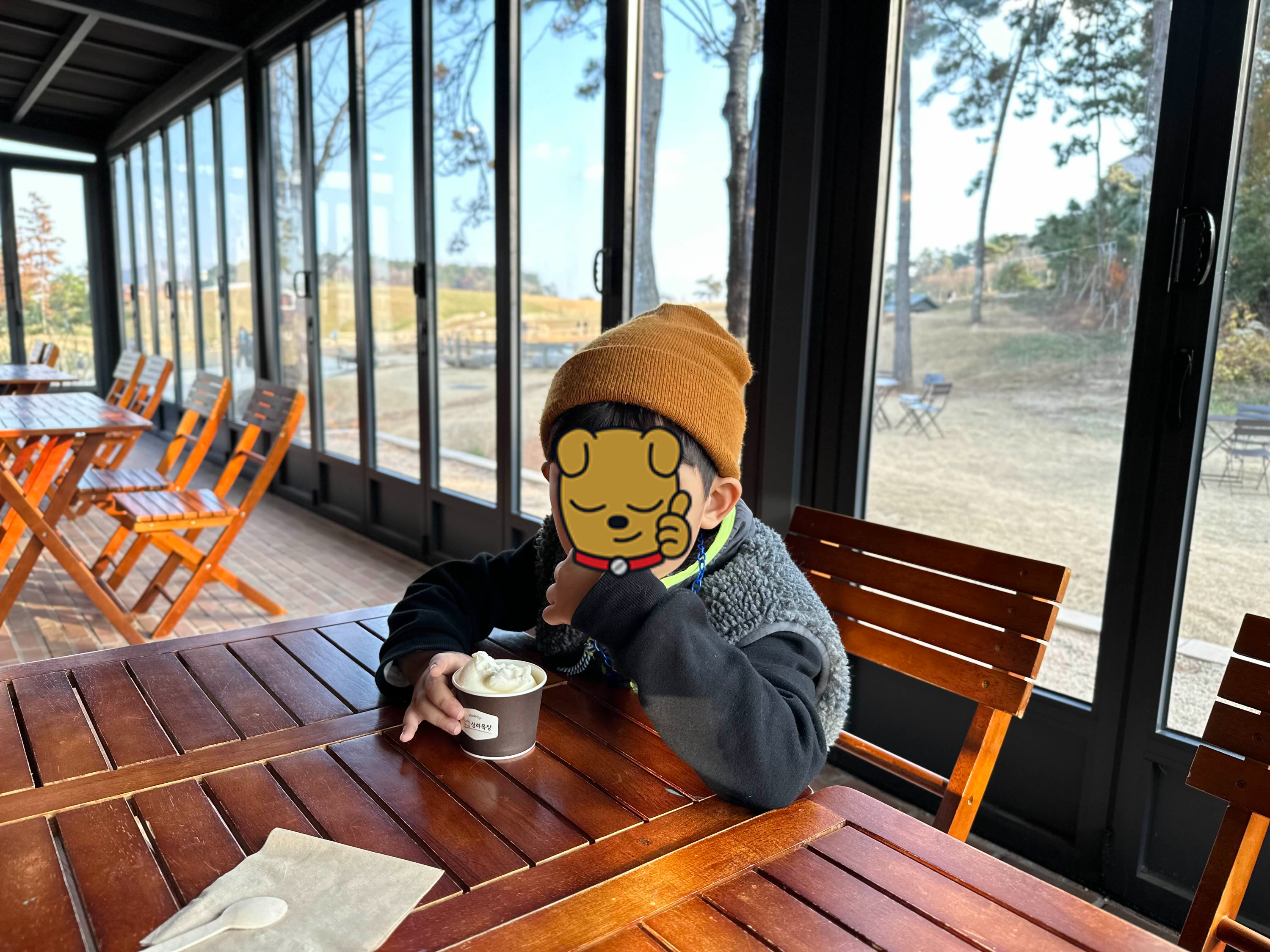 카페에서 상하목장 우유로 만든 아이스크림을 먹었어요.
