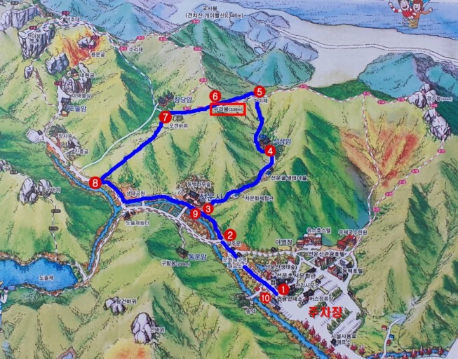 표시된 코스로 1번~10번까지 아이랑 다녀오시면 2~3시간 정도 걸릴 듯해요. (6세~저학년 초등생 추천)