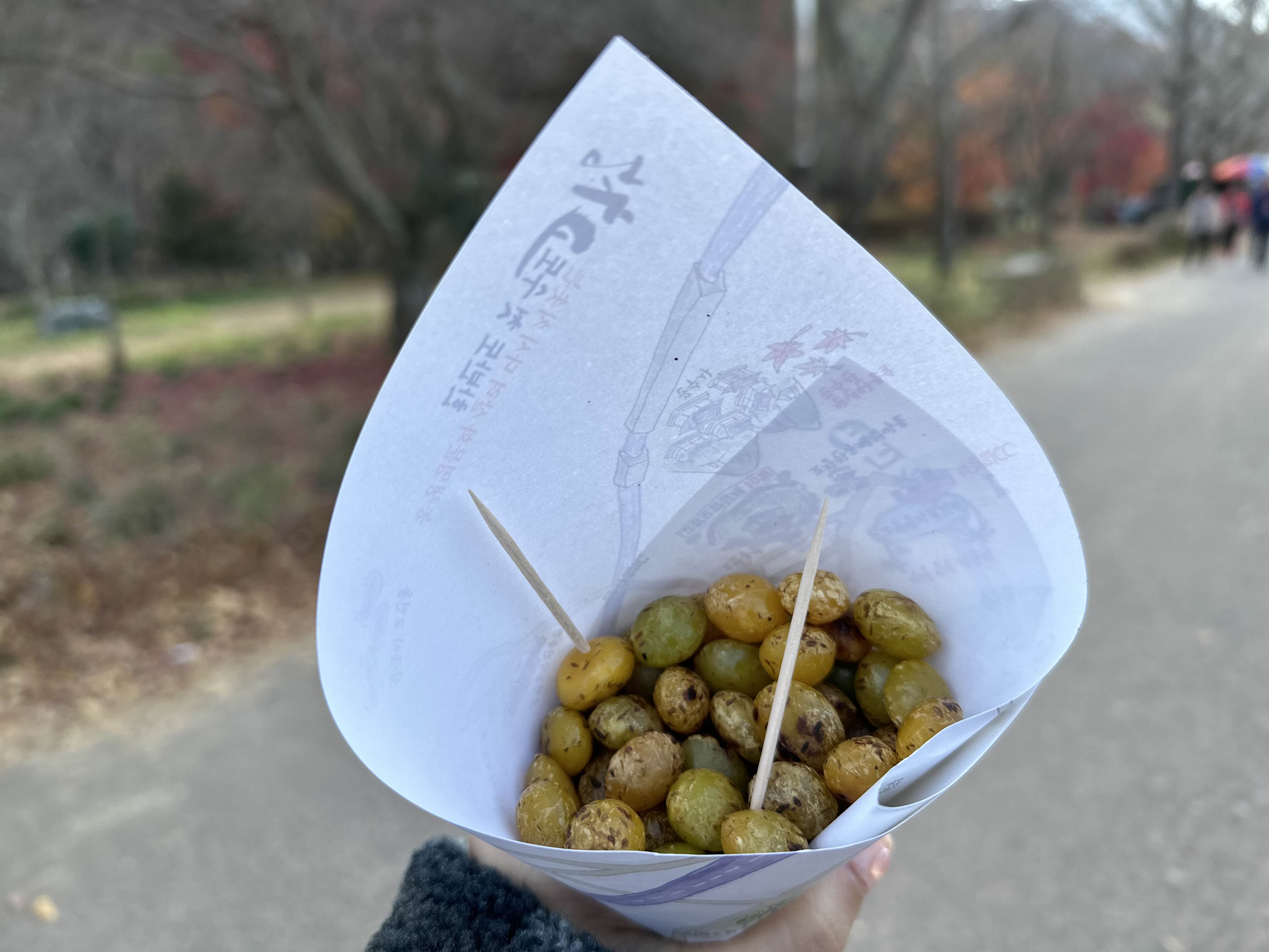 은행구이 , 5000원 초입부에서 판매하는 은행 구이를 사 먹어봤어요.