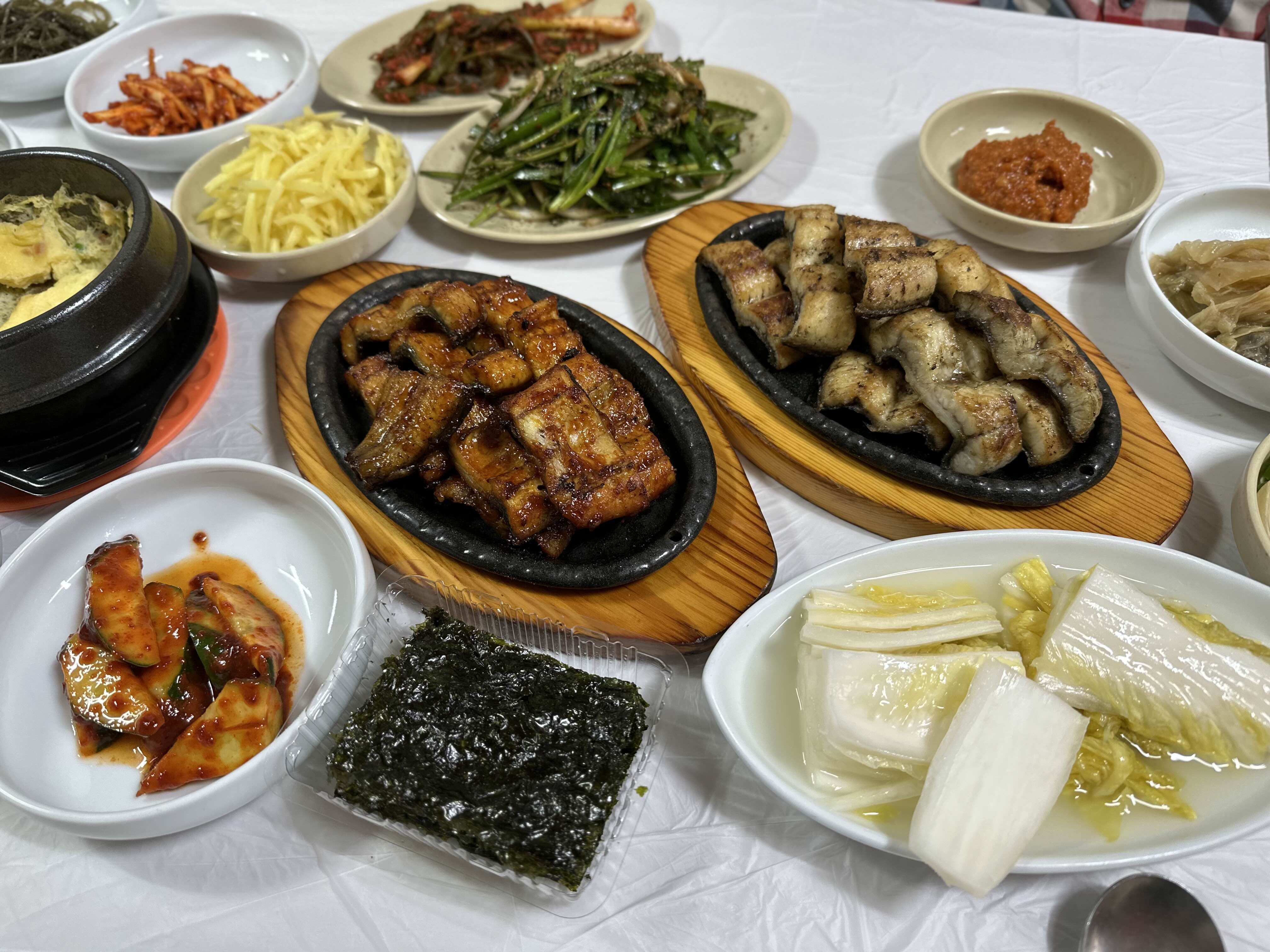 저는 역시 양념보다 소금이 맛있었고 갯벌장어의 탄력에 정말 놀랐어요. 태어나서 먹어본 장어 중에 가장 맛이 훌륭했고 식사 끝무렵엔 육질의 쫄깃함 때문에 턱이 얼얼할 정도였어요. 역시 전라도라 그런지 반찬들도 맘에 들었어요.
