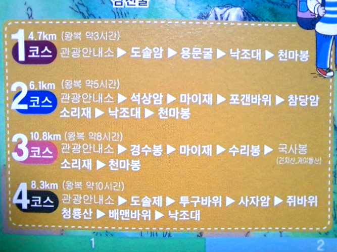 저희는 1코스에 도전했다가 아이의 컨디션 난조로 도솔암까지 다녀왔어요. 그런데도 사진 찍고 놀다 보니 3시간은 걸렸었네요.