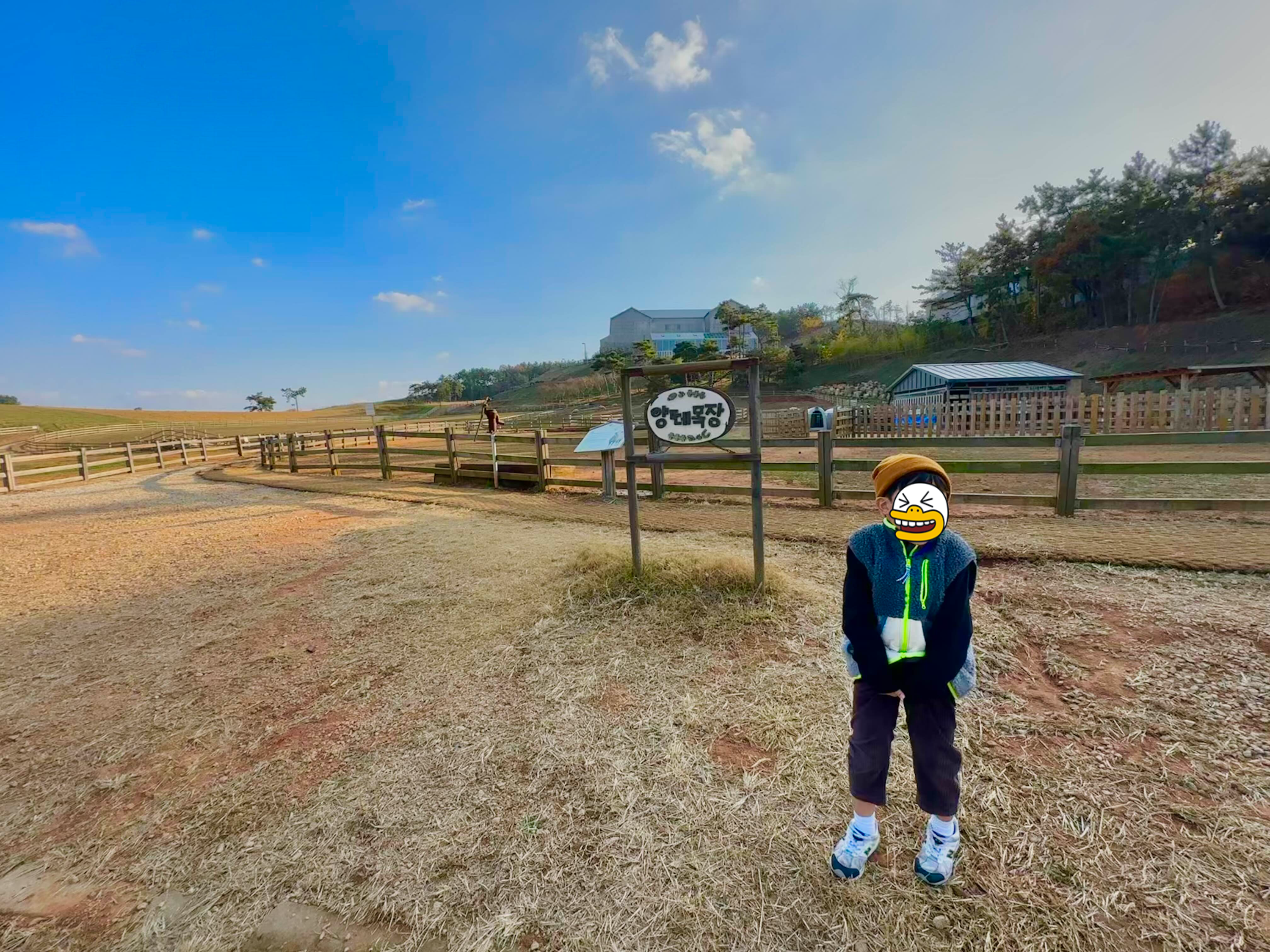 야외 양 떼 목장이 드넓고 아름다워요.