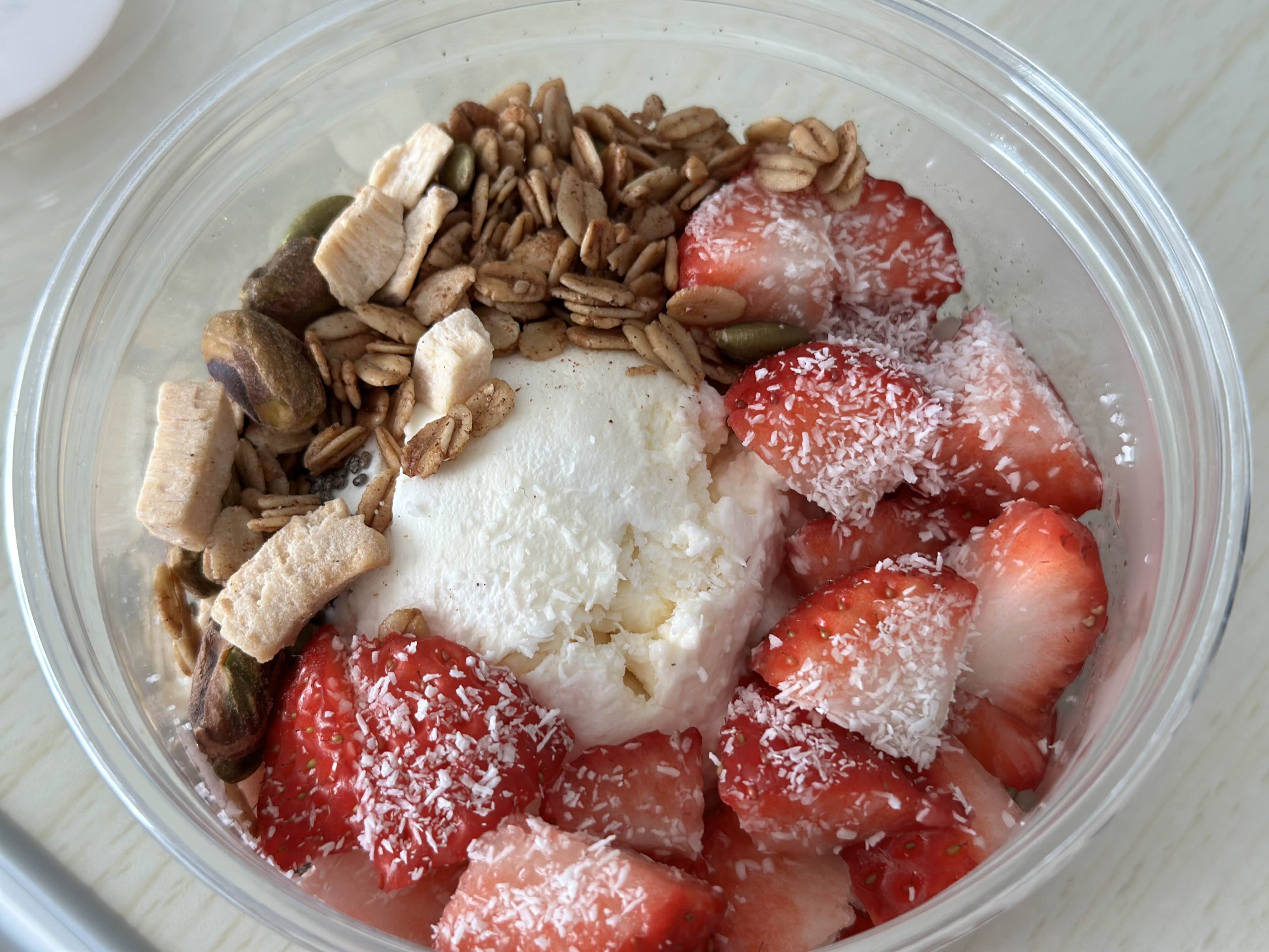 양은 용기가 평소 먹던 샐러드가 들어있는 용기보다 작아서 이걸 먹고 배가 찰까 싶었는데 요거트가 떡을 먹는 것처럼 밀도가 아주 꾸덕하게 높아서 한 끼로 충분했어요. 그리고 상상했던 것 이상으로 정말 맛있어서 다이어터의 식사시간이 매우 행복했어요.