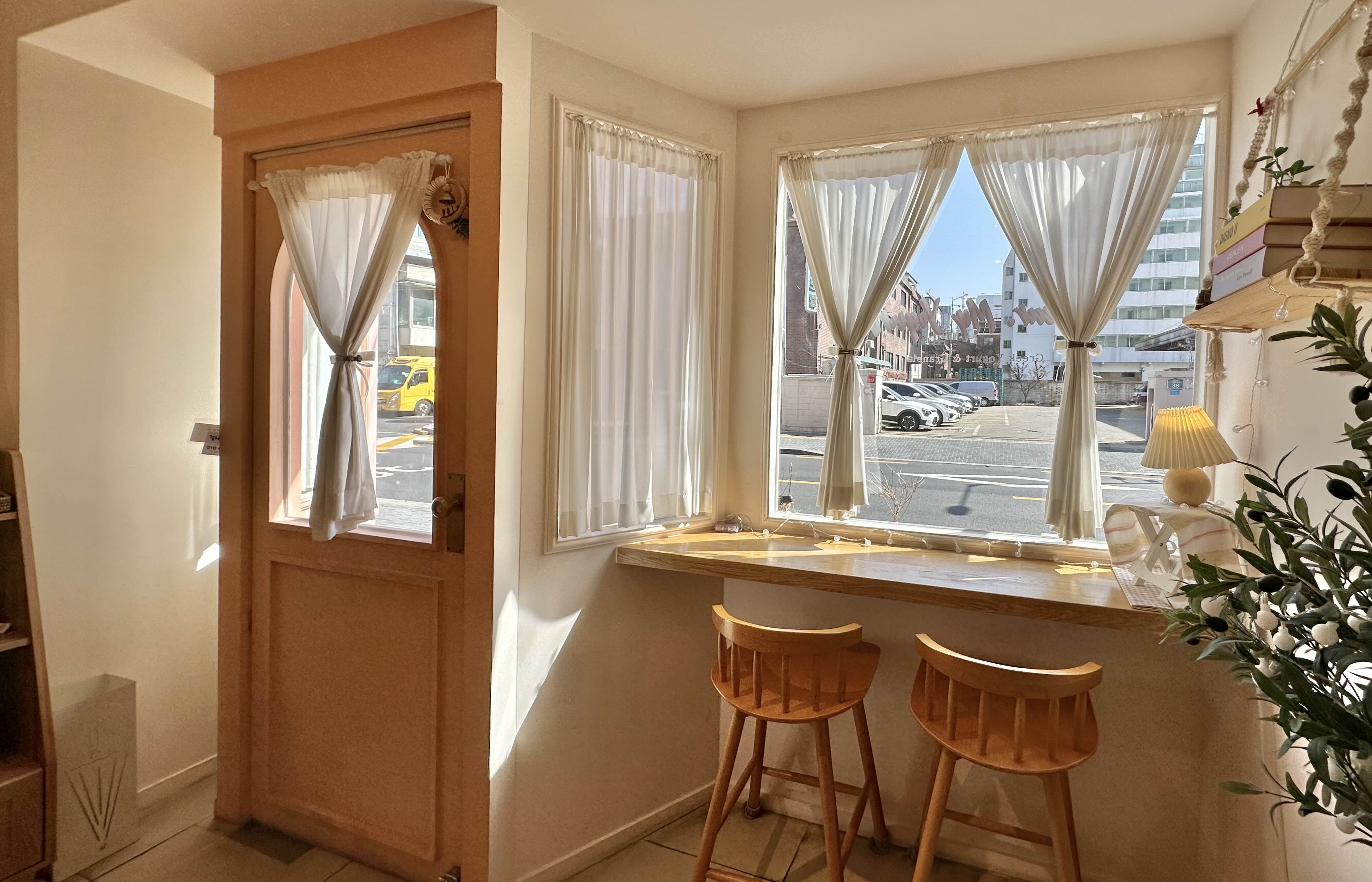 그림 같은 창가 테이블 풍경이 보는 자체로 힐링이었어요.