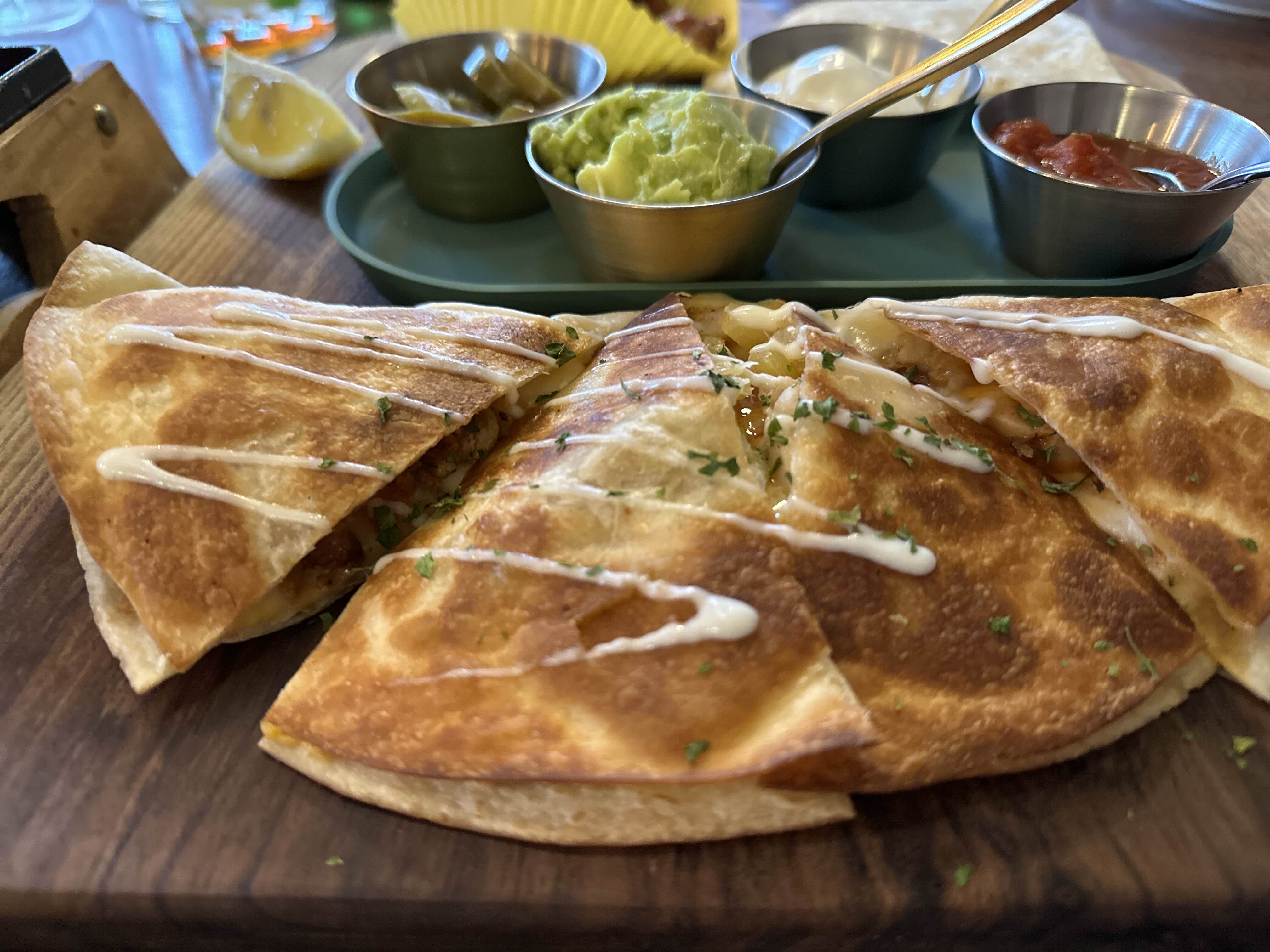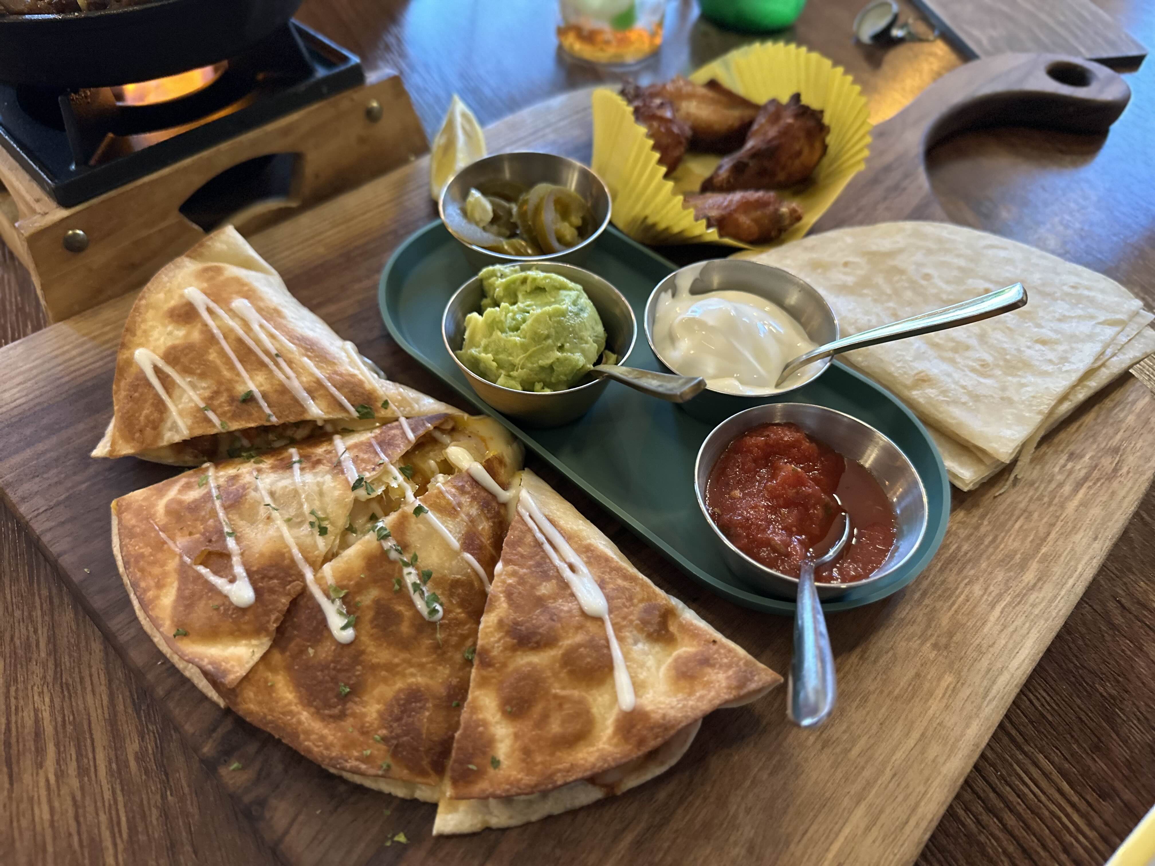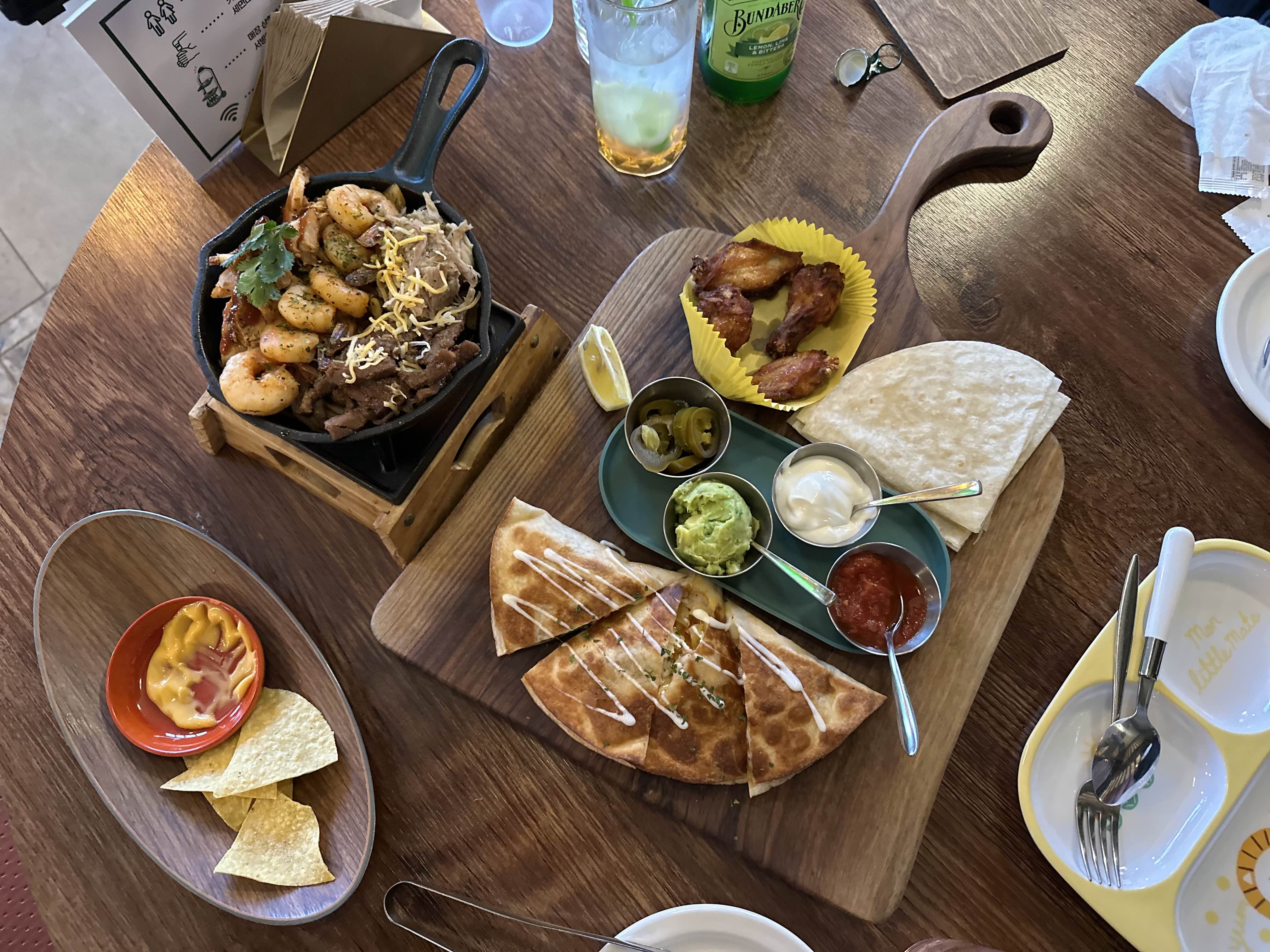 화이타는 스몰 사이즈, 퀘사디아, 윙, 나쵸칩이 나오는데 아이랑 세 식구 먹기에 양이 적당했어요.