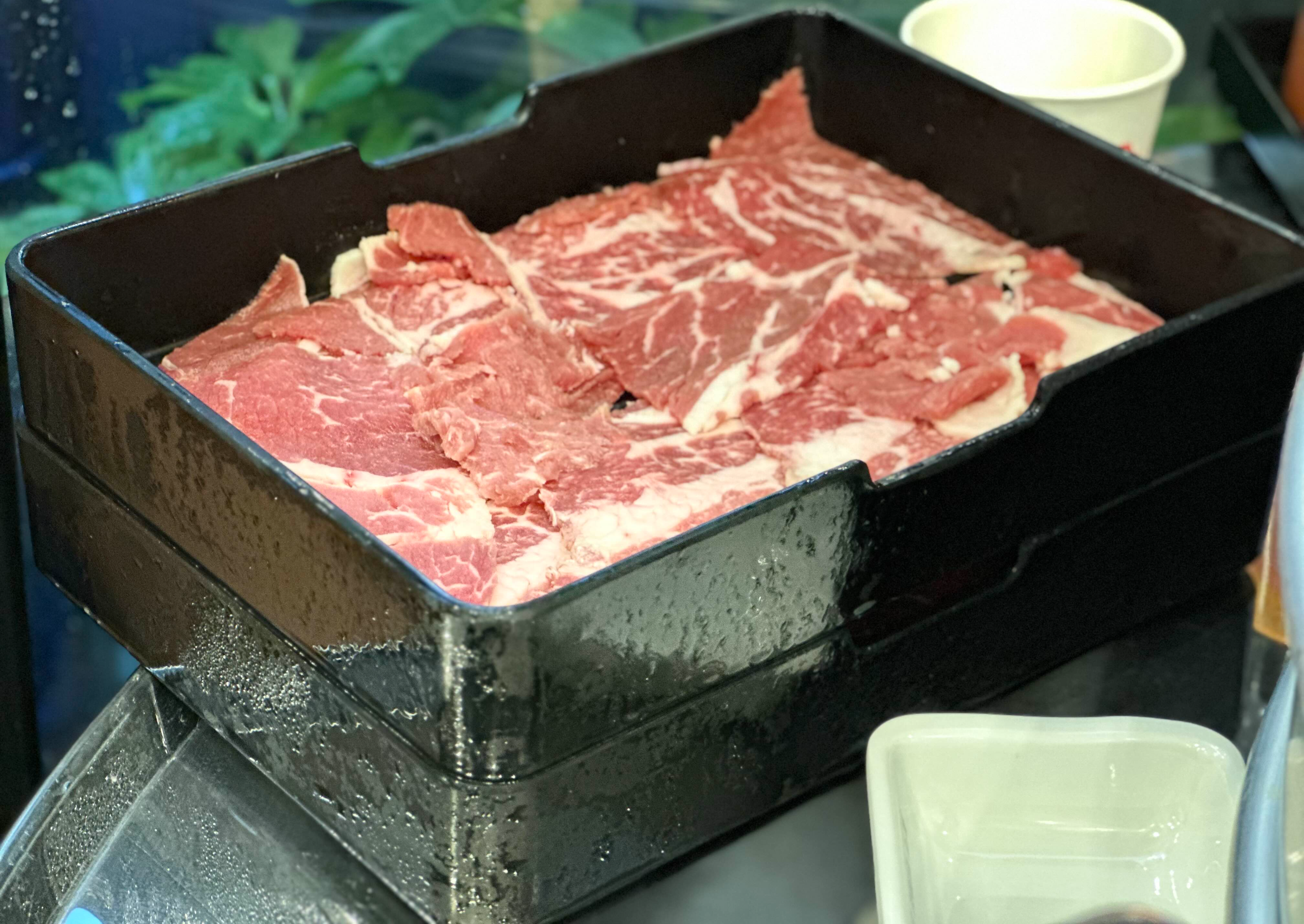 조개모양 앞접시가 신규입점한 곳이라 깨끗하네요. 샤브샤브용 소고기도 너무 얇지 않게 잘 썰려있네요. 주문하고 5분 정도 지났을까 가마솥만 한 크기의 전골냄비가 나왔어요. 타이머를 11분에 맞추고 끓이기 시작해요.